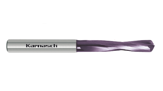 Выполнены из твердого сплава, тип H (Hard), угол наклона спирали 15°, короткая режущая часть, направление подачи вертикально, сверление без внутреннего подвода СОЖ, стандарт Karnasch, хвостовик HA без внутреннего подвода СОЖ (DIN 6535), угол заточки 140°, тяжелая обработка. Покрытие Hardlube, для использования с СОЖ или без охлаждения.